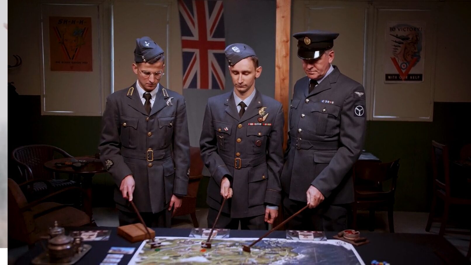 Scenariusz i koncepcja wideo oraz spora część zaplecza produkcyjnego należały do mnie. Prowadząc narrację typową dla historycznego kina wojennego musiałem jednocześnie zadbać o warunki do przedstawienia gry w jak najbardziej atrakcyjny i kontekstowy sposób. Dlatego podjąłem się wyzwania znalezienia wieży obserwacyjnej, rekonstruktorów brytyjskiej Home Guard z początku 1940 roku oraz rekonstruktorów w lotniczych mundurach legendarnego dywizjonu, którzy na dodatek grają w grę planszową w historycznych barakach.